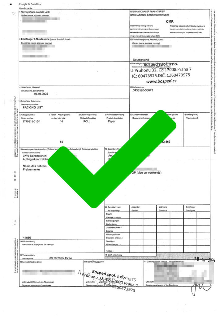 V takovém případě zašlete rovnou komplet originálních dokladů poštou na adresu společnosti BOSPED, spol. s r.o. do Rudné.